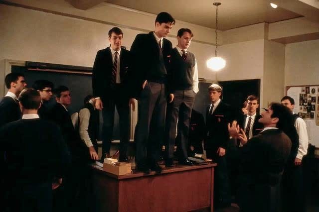 但当他离开的那天,学生们一个个跳上桌子,一句句‘my caption’ 让‘船长’热泪盈眶……